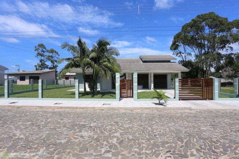 Casa com 03 dormitórios sendo uma suíte, 01 banheiro social, sala de estar, cozinha, varanda frente e fundos com churrasqueira externa, abrigo para 01 automóvel, área de serviço interna, pátio frente e fundos.
