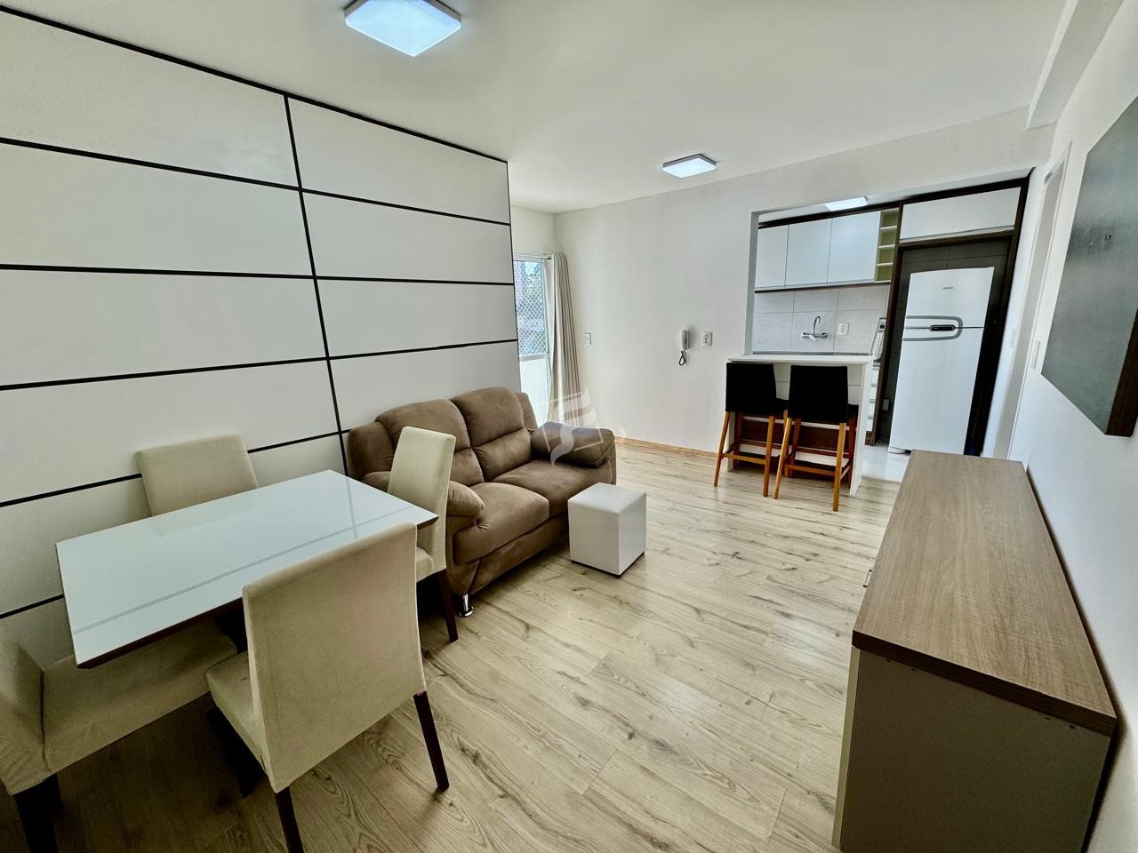 Excelente Apartamento Mobiliado: Dormitório, 1 Banheiro social, Cozinha/Área de Serviço, Sala de Estar, Sacada, Gás central, Água quente, Elevador, Portaria, Portão eletrônico, Piso: Laminado/Porcelanato, Posição solar: Norte, Proximidades: Pizzaria Artigianale, 1 Box/Garagem, Área Privativa: 60,00m².